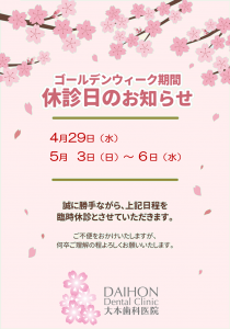 ゴールデンウィーク休診日のお知らせ